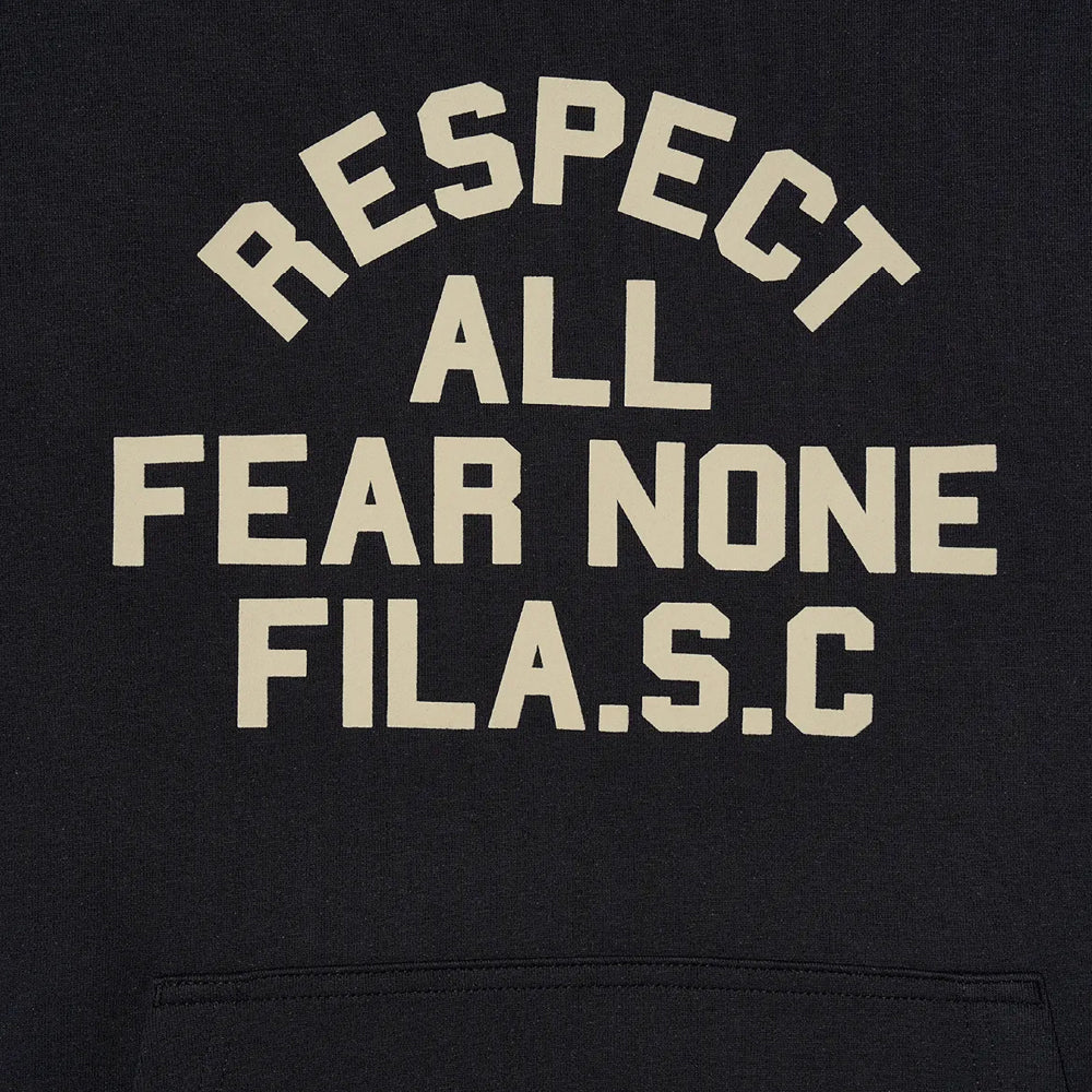 The trendy varsity mood is reinterpreted through FILA’s unique design. The typography on the front, featuring the message "RESPECT ALL, FEAR NONE," amplifies the sporty vibe.