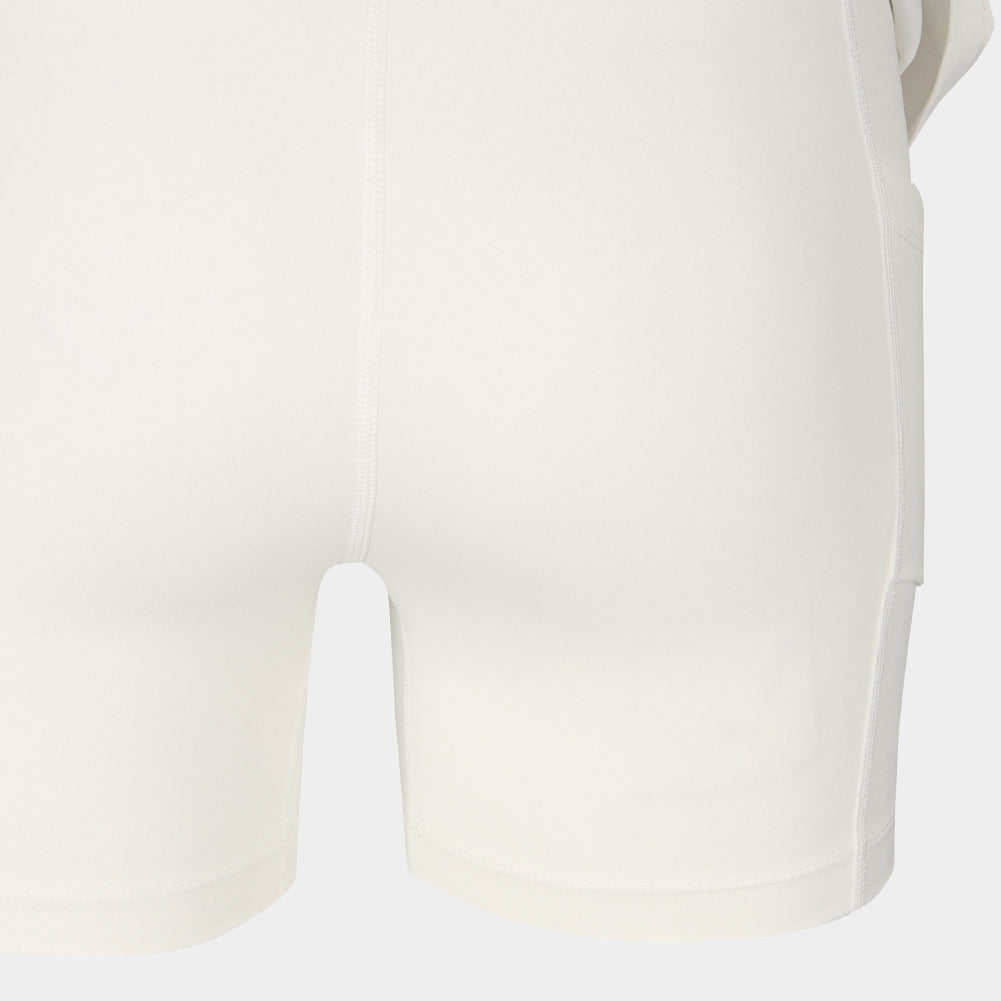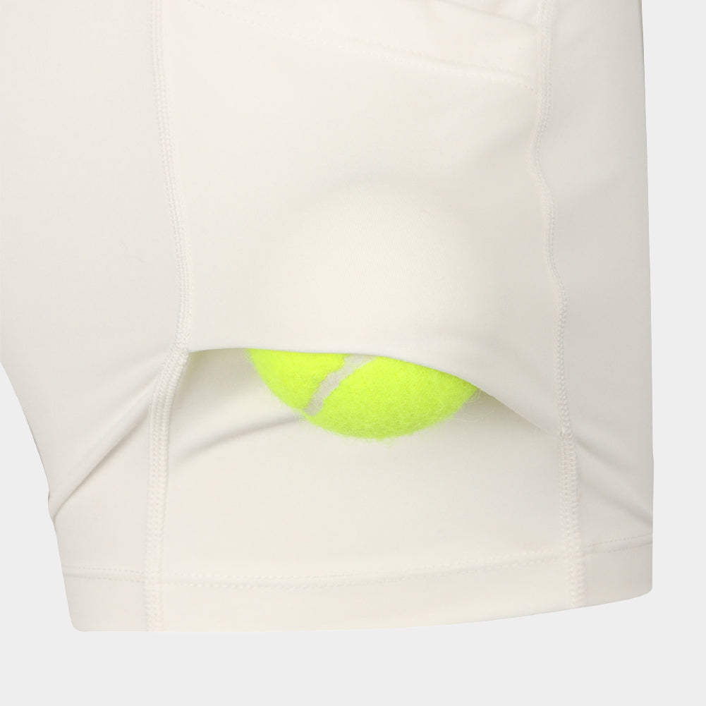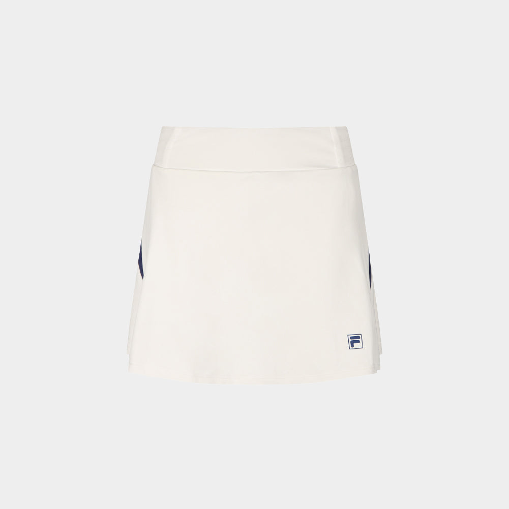 Inner shorts are included for added comfort and stability, and a tennis-ball pocket is placed on the inside of the inner shorts for practical use during play. FILA’s signature streamlined flag pattern is applied as contrast side color blocking, balancing classic heritage with a sporty mood. The smooth curved lines add a refined accent to the silhouette and complete a stylish look even during high-movement activities.