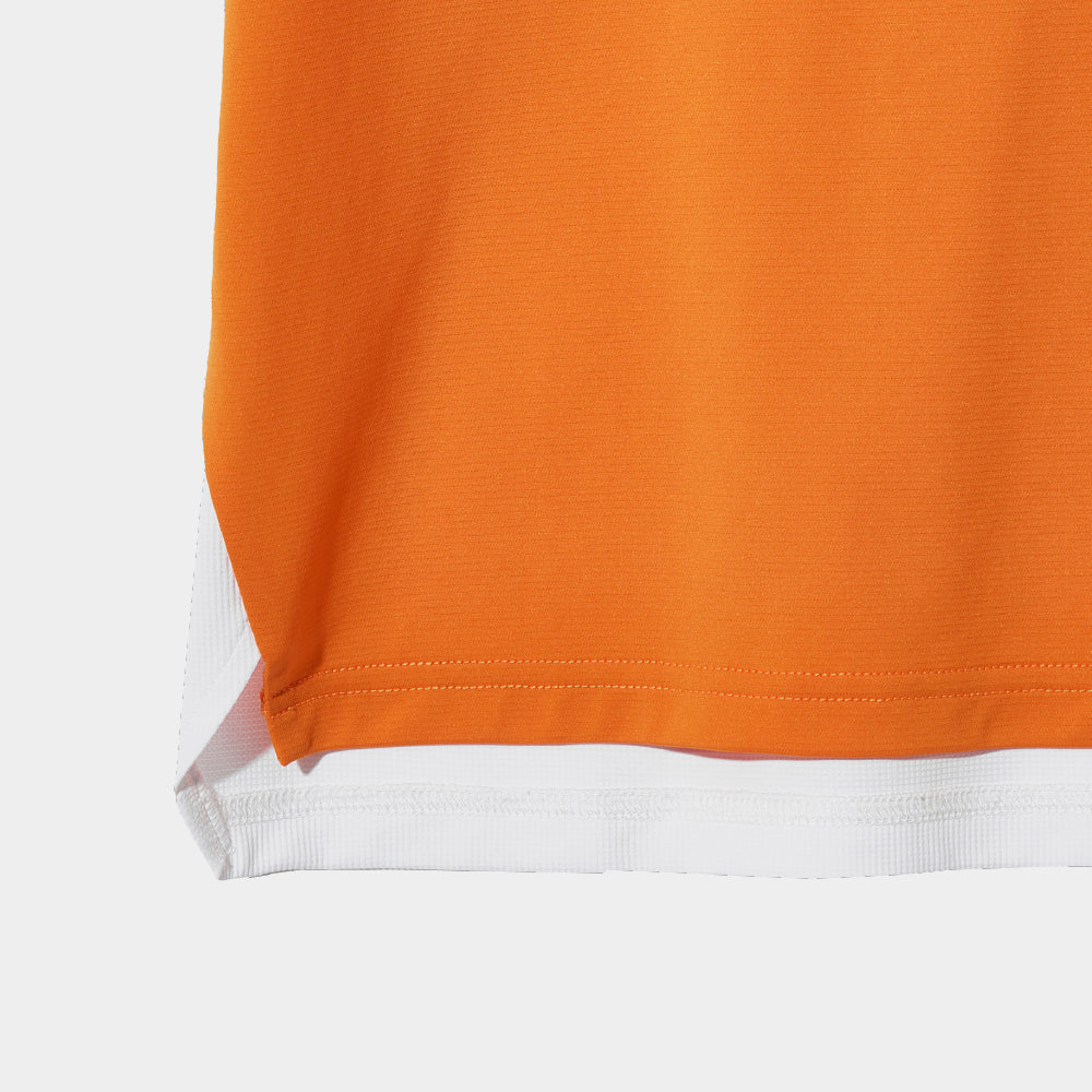 This T-shirt is made with a mix of mesh material that absorbs moisture quickly and helps you move comfortably and pleasantly. The mesh material on the back helps keep you cool when exercising outdoors in the heat.