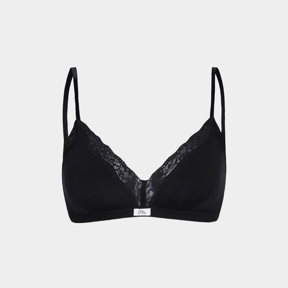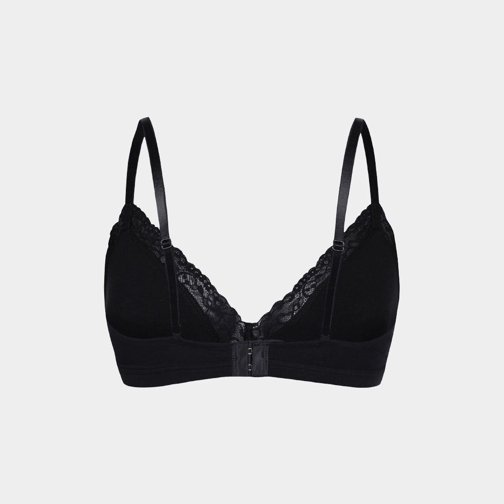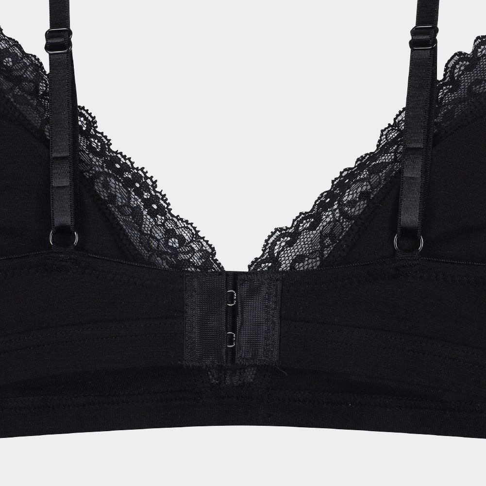 Crafted with over 90% plant-based recycled Lyocell fiber, this bralette offers a sustainable yet stylish choice for your wardrobe. We blend TENCEL™ fabric—derived from eucalyptus trees—with delicate lace to create a design that is both elegant and eco-friendly.