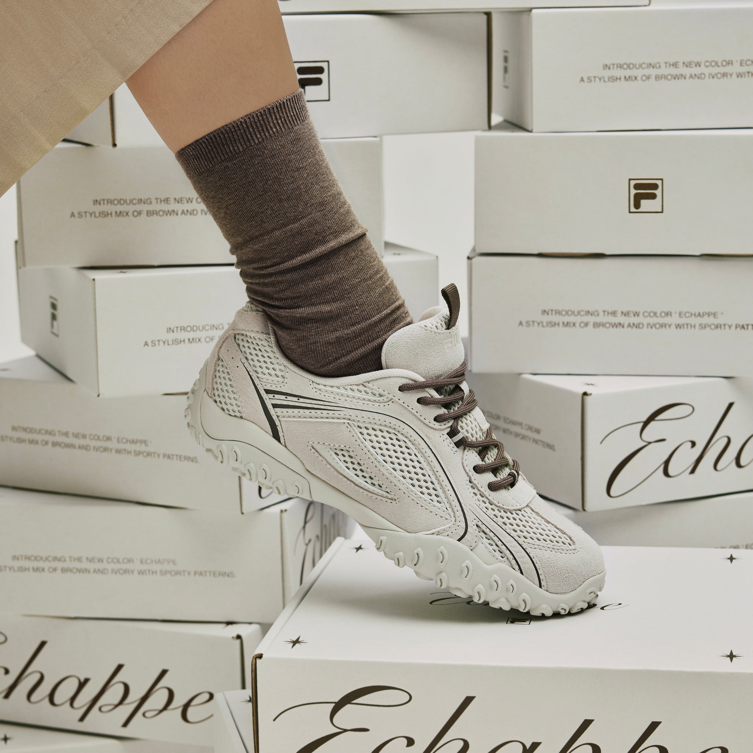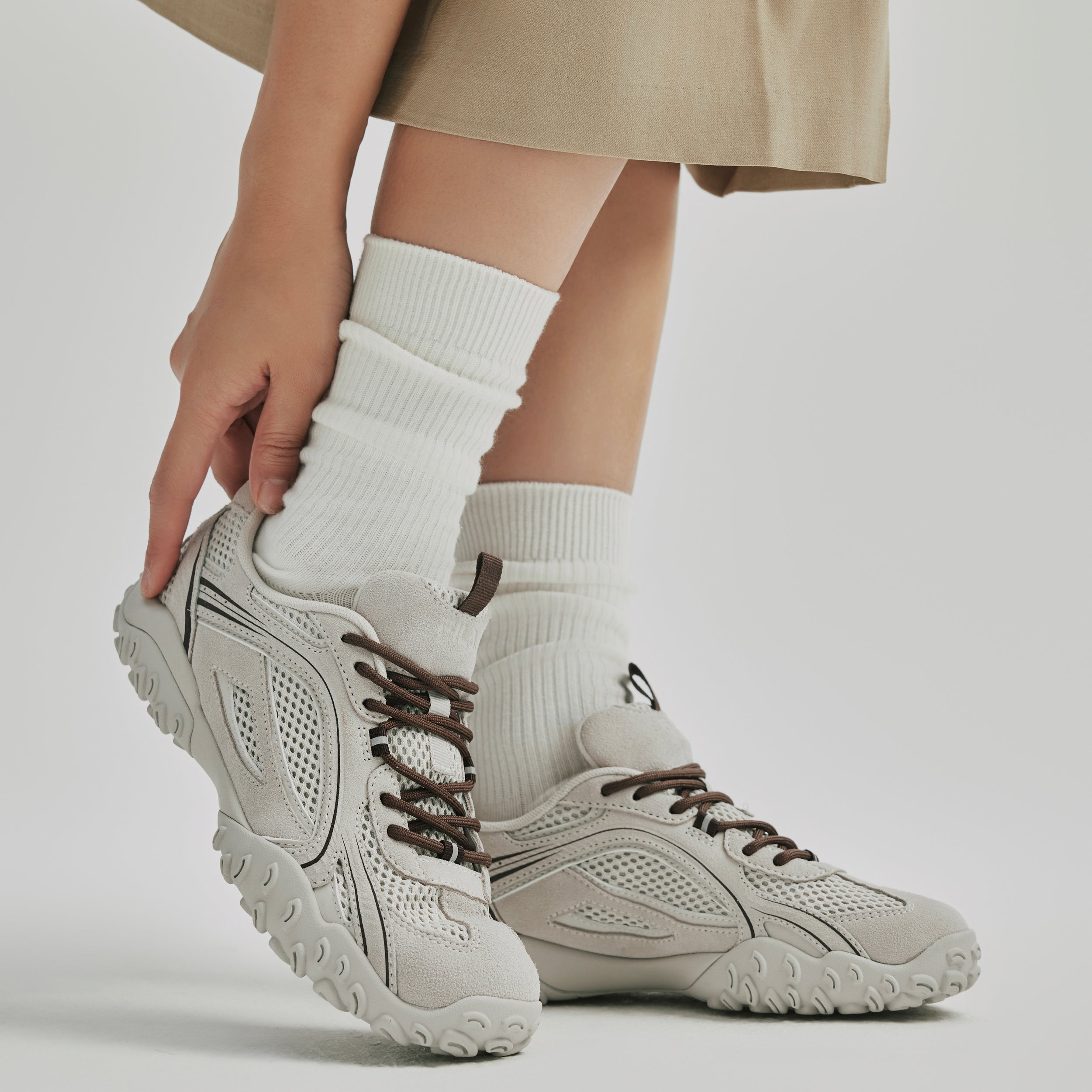 The outsole detail that embodies the FILA F logo shows its own identity.
